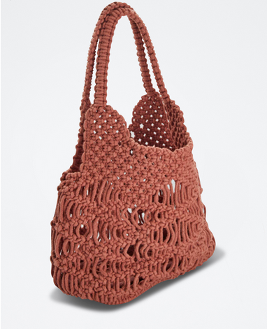 Sac porté épaule en crochet, 2 anses. Coloris : rouge brique, Matière : coton, polyester, viscose et acrylique, Dimensions : 32 x 16 x 25 cm