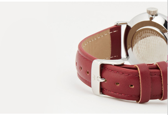 Bracelet effet cuir,Verre minéral, Boîtier en métal , de couleur bordeaux, argenté et gris clair, Fermeture par boucle ardillon.