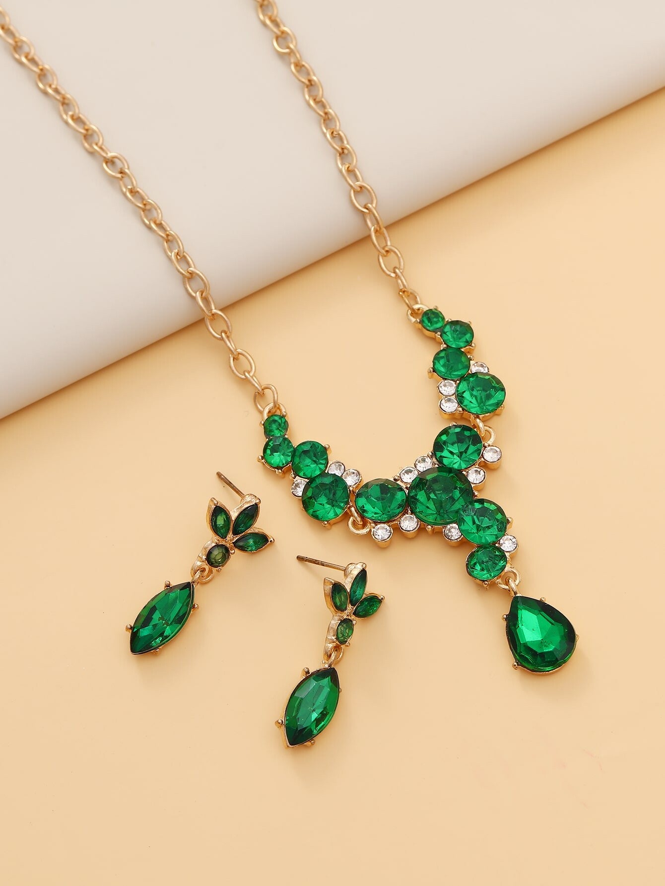 Parure avec strass et gemme vert en alliage très tendance.