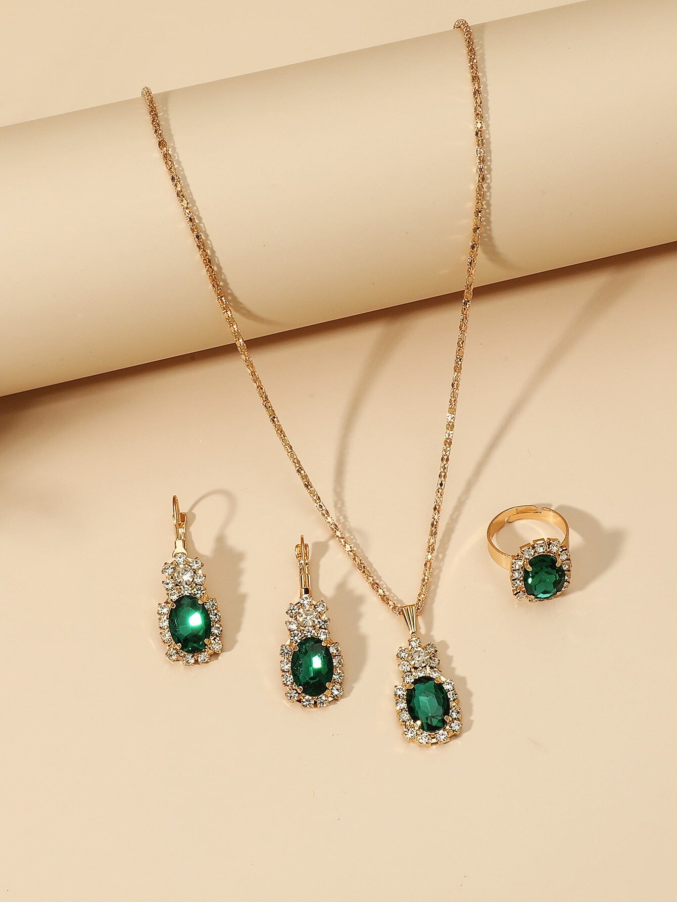 Parure de bijoux à strass vert et en Métal Doré de Style Glamour.