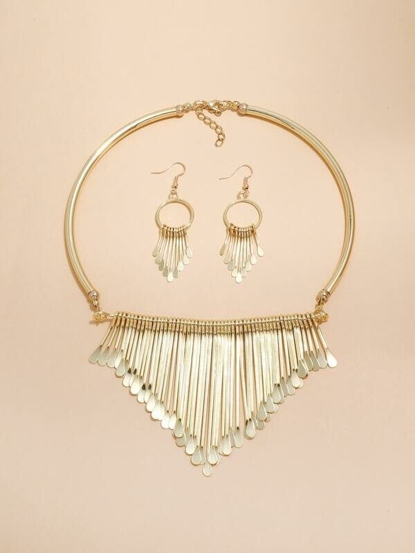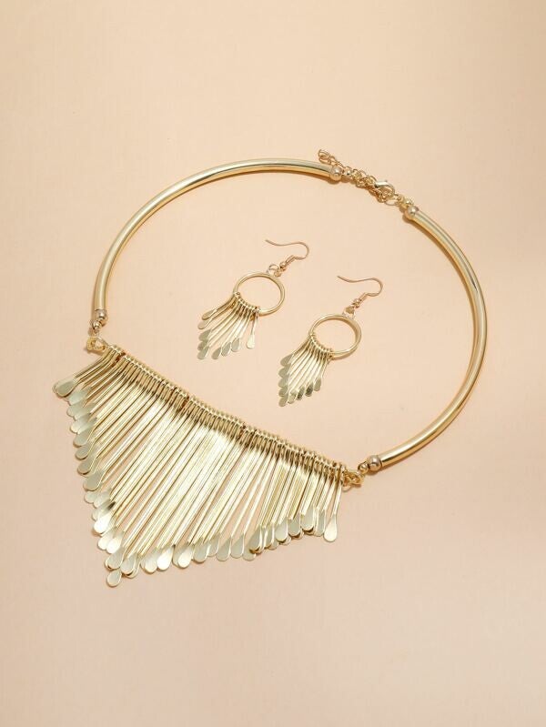 Parure de bijoux à franges métalliques - Gland Frange en Alliage Doré de Style Glamour