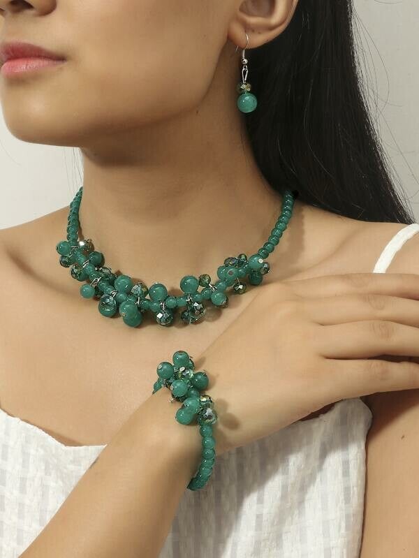 Parure de bijoux avec perles vert - Verre de Couleur Vert
