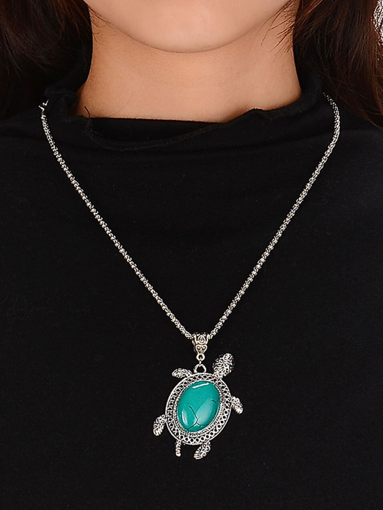 Parure de bijoux avec détail de tortue turquoise - en Alliage Argenté de Couleur Bleu azur et de Style Bohème