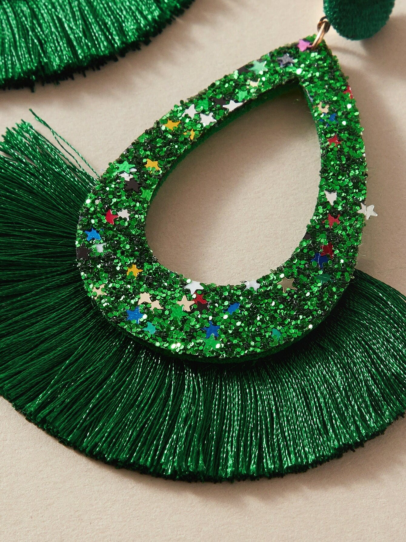 Boucles d'oreilles à franges vert - en Gland Frange, Goutte d'eau en Polyester de Style Bohème