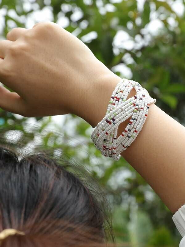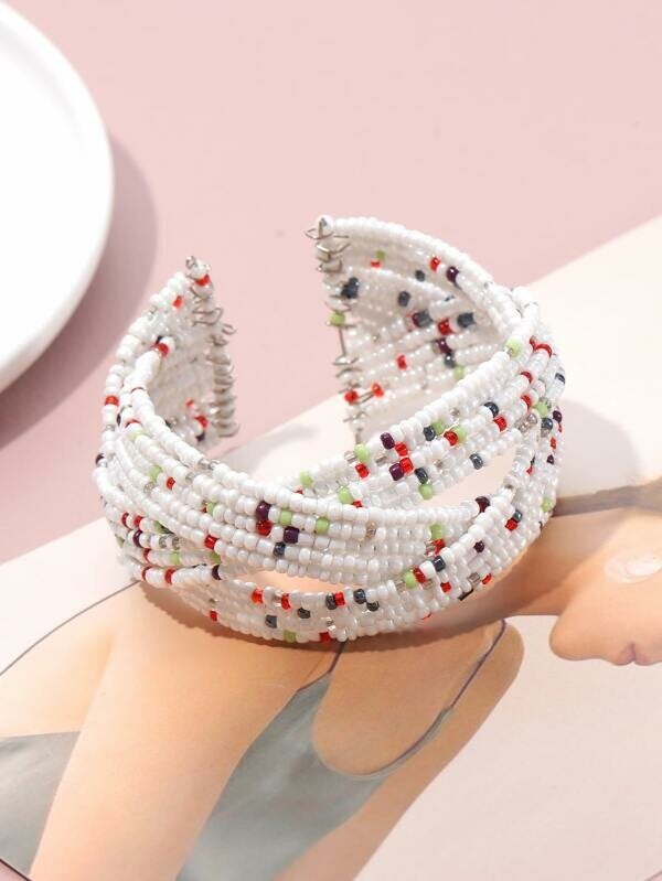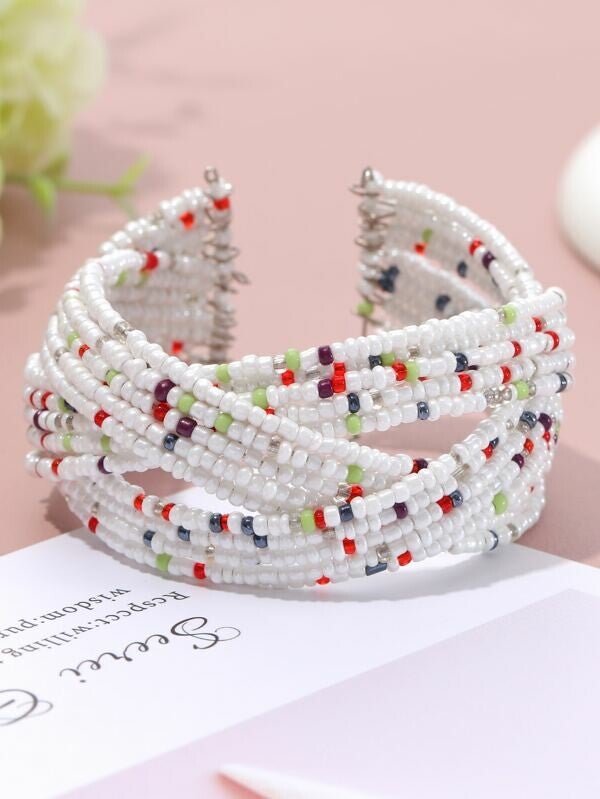 Bracelet rigide ouvert en plastique blanc Perles de Style Vacances