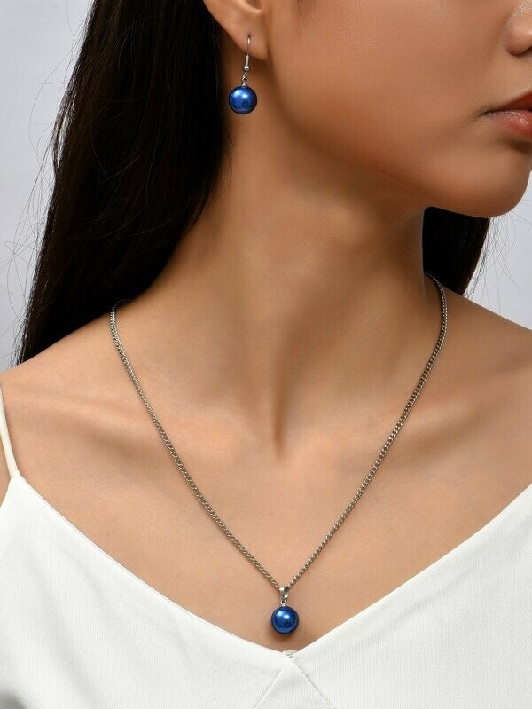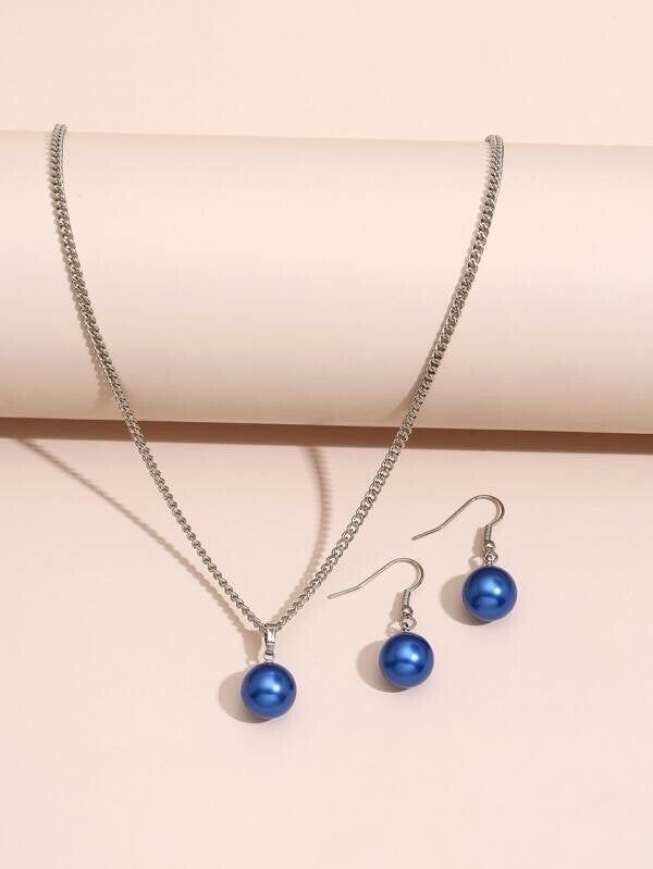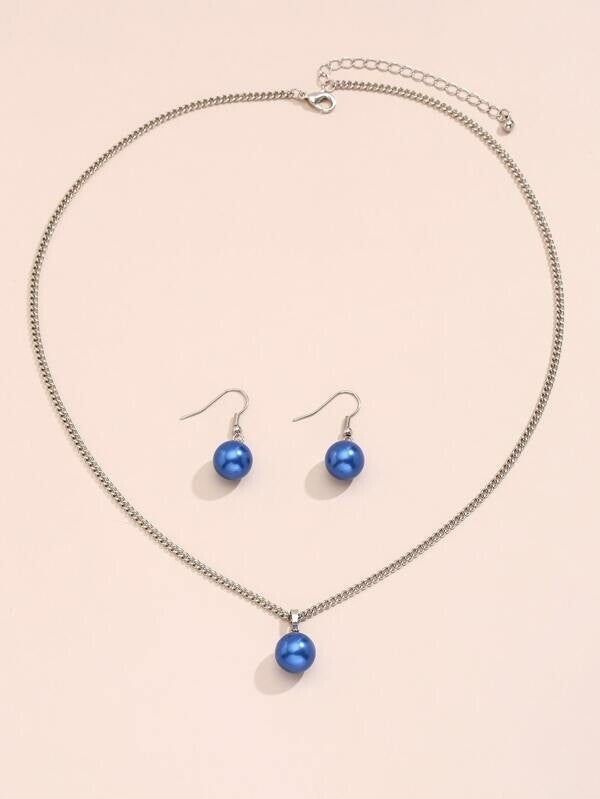 Parure de bijoux avec fausse perle bleu d'Azur en alliage