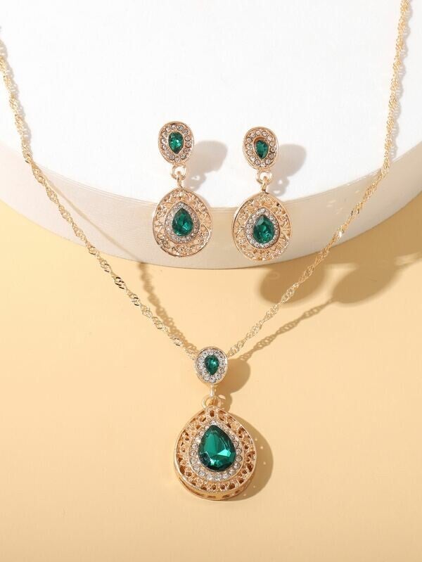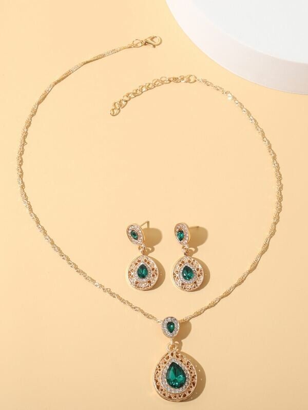 Parure de bijoux avec strass verte