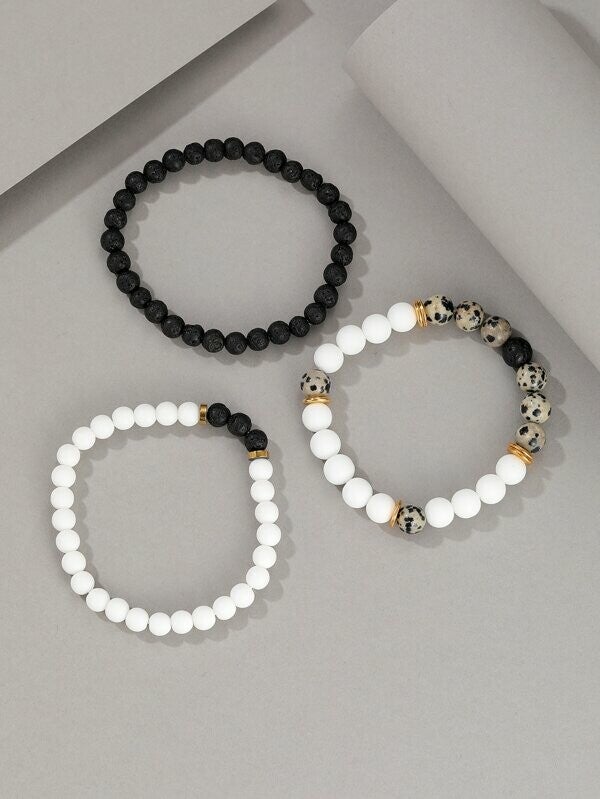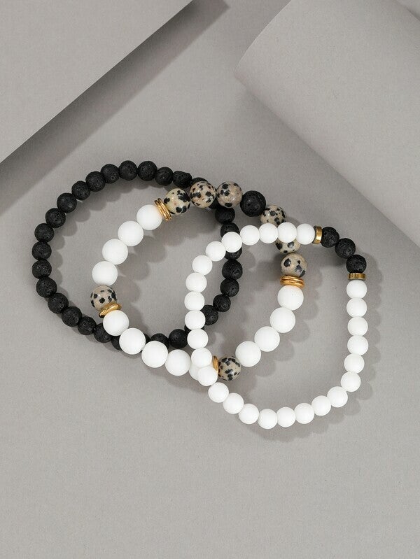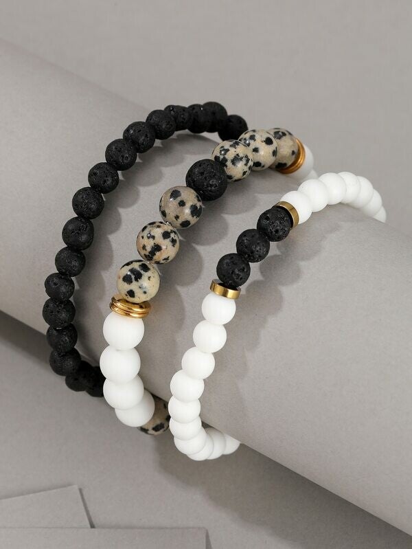 Bracelet tressé Homme en Métal & perles blanc & noir de Style Casual