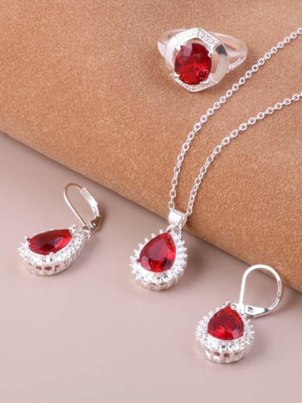 En Argent de forme de Goutte d'eau et en Résine synthétique de Couleur Rouge & de Style Glamour