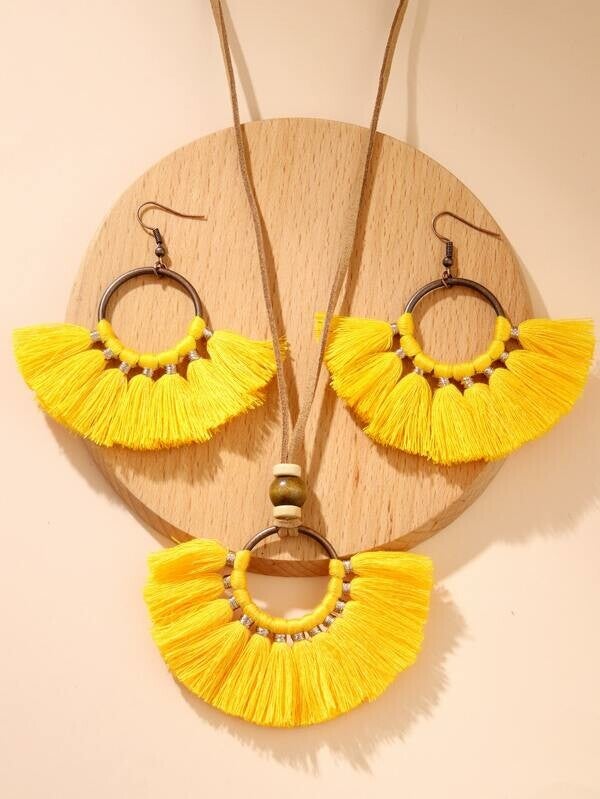 Parure Rond, Gland Franges Alliage Doré de Couleur jaune citron Style Bohème