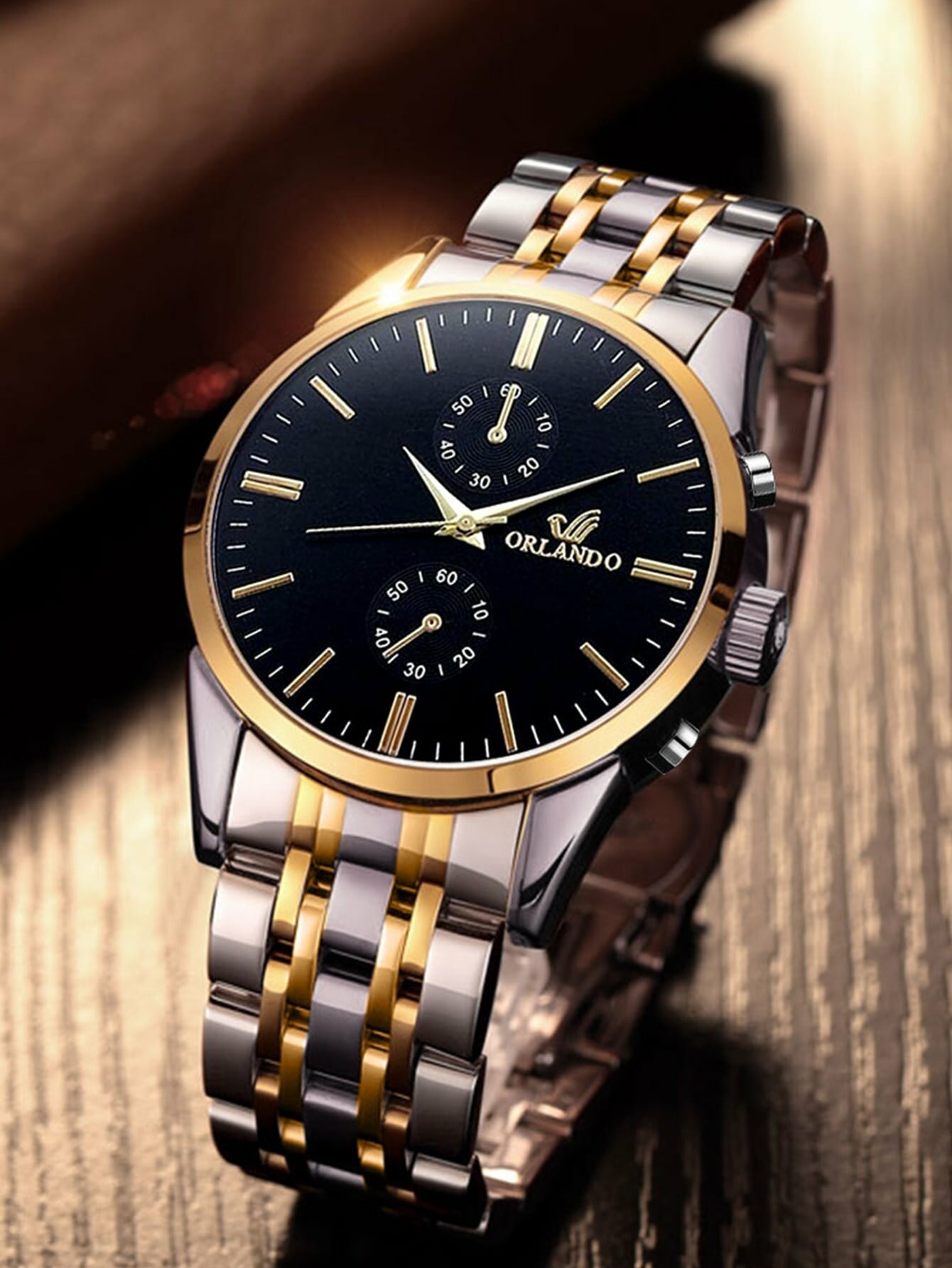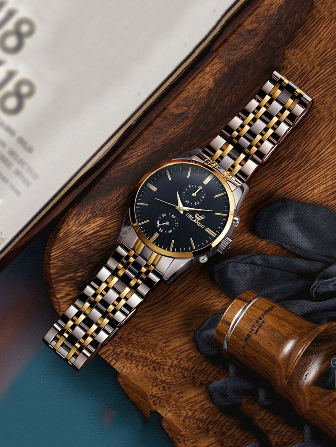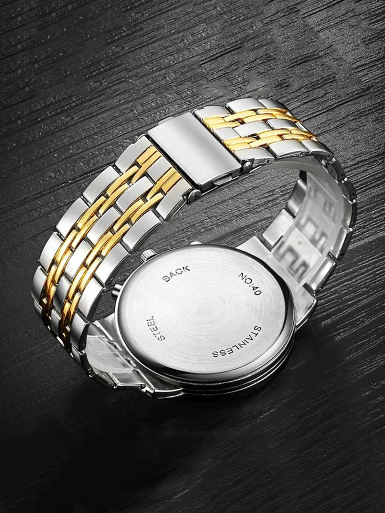 Montre à quartz ronde à pointeur, type d'affichage en aiguille, boîtier & bracele en Alliage Doré & Pas étanche