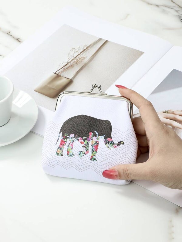 Porte-monnaie avec motif éléphant en Cuir PU de Couleur Rayé noir et blanc Style à la mode