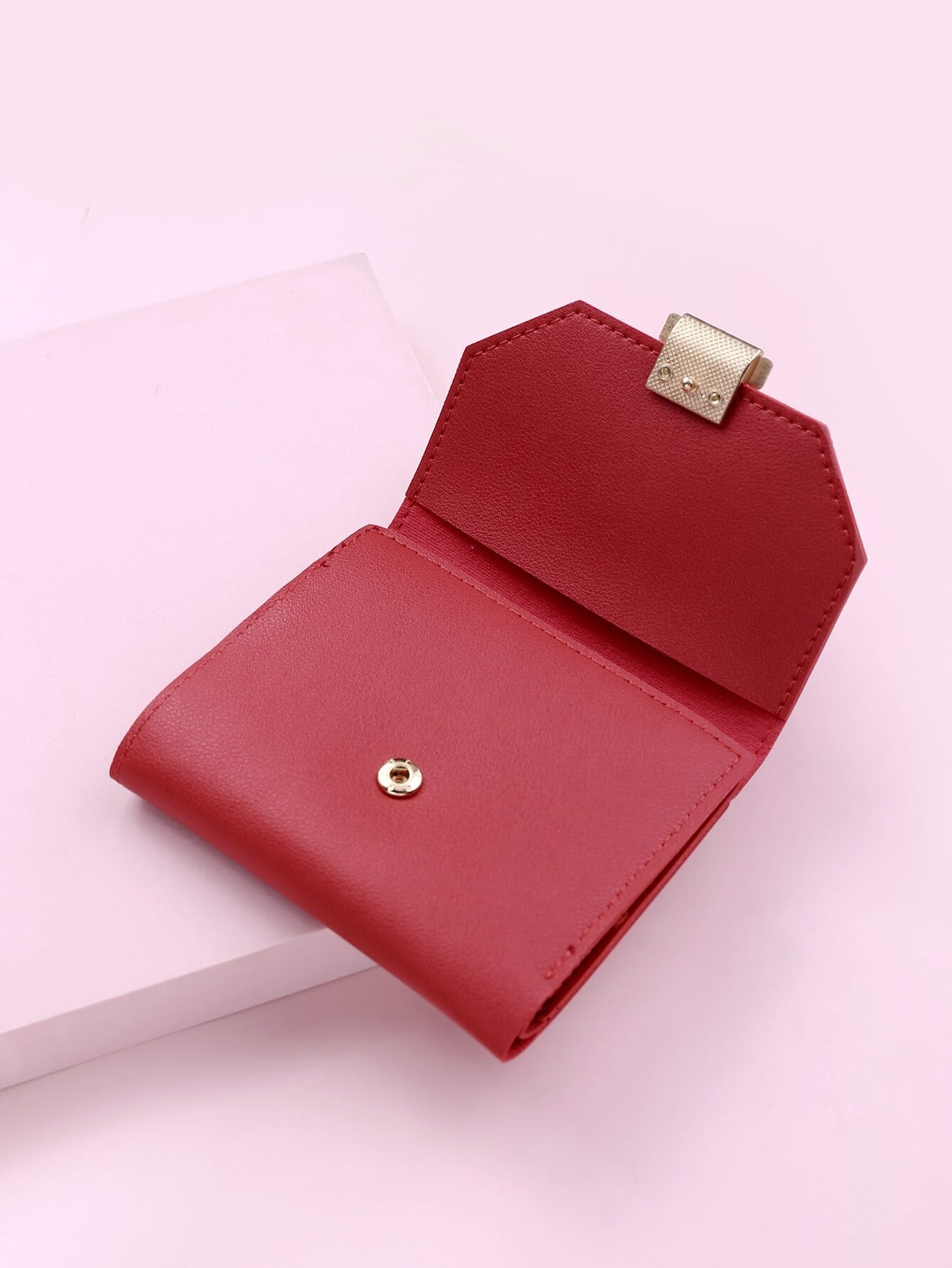 Portefeuille serrure à rabat en Cuir PU de couleur rouge très à la mode