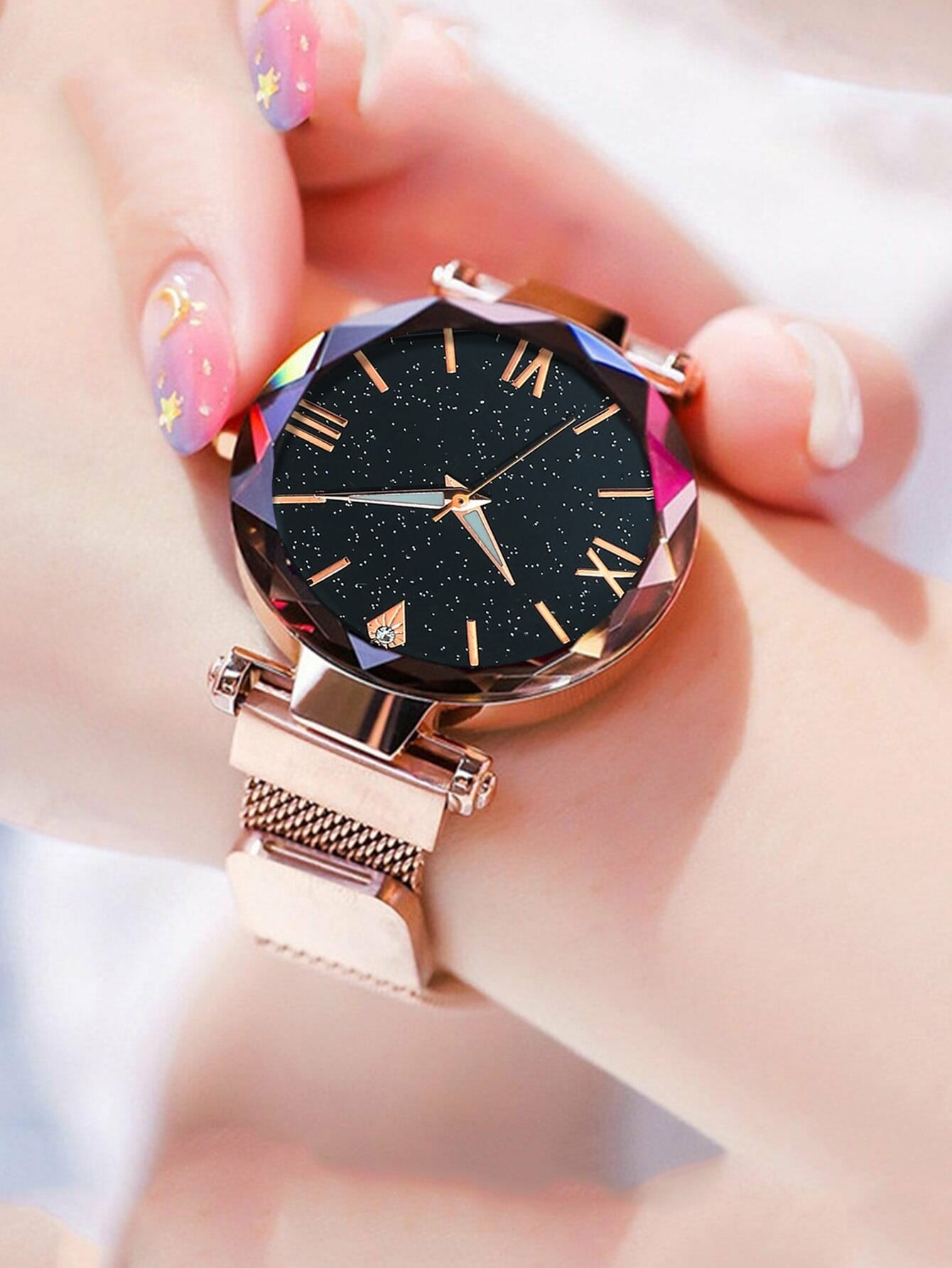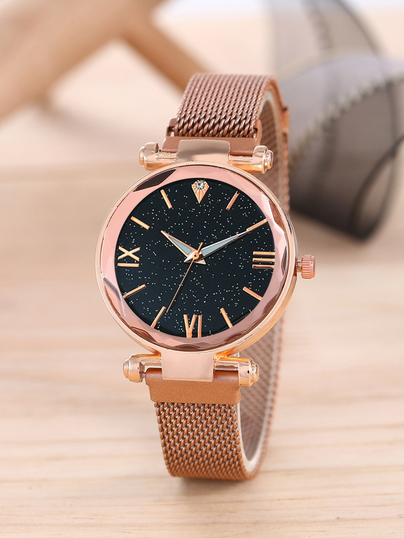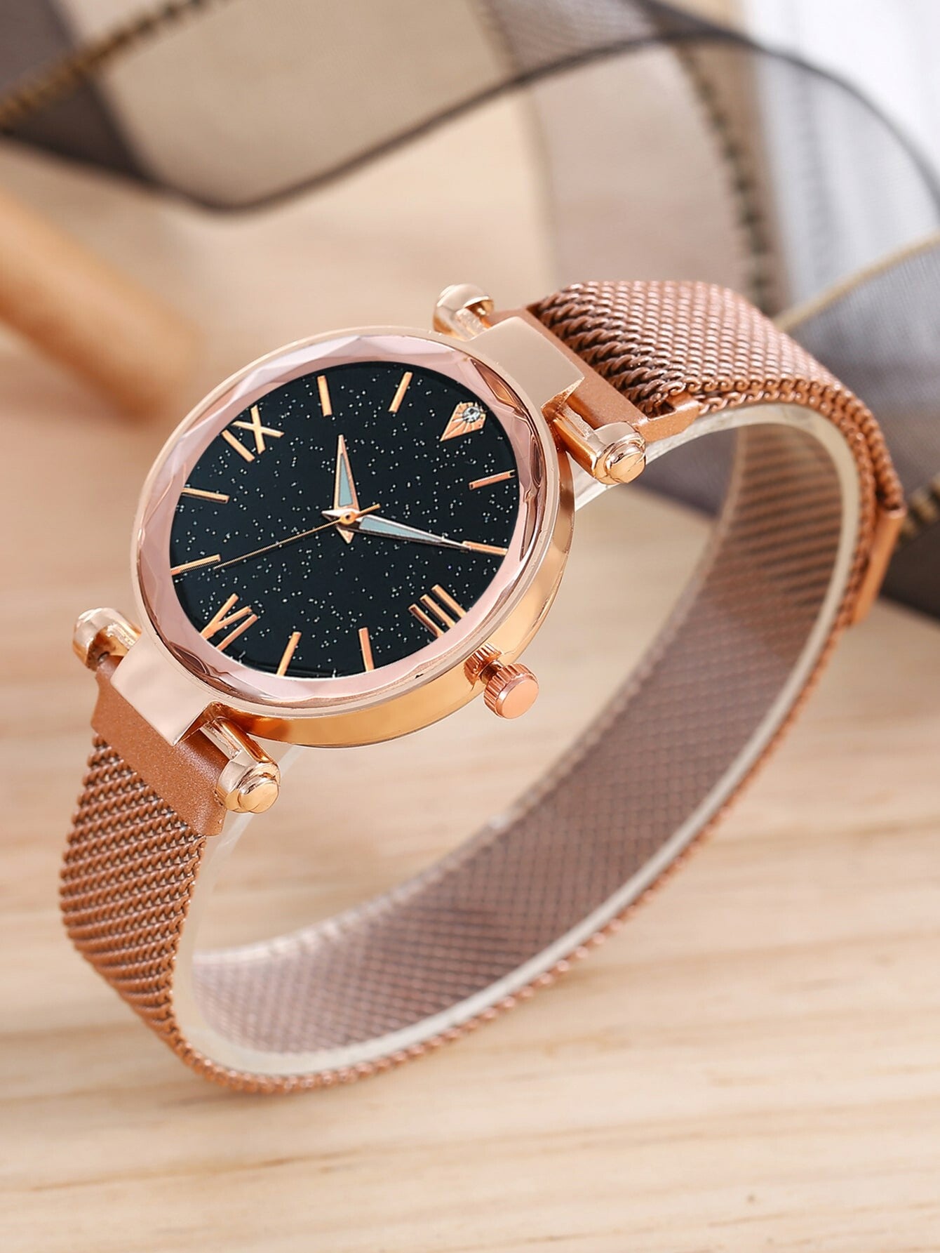 Montre à quartz à cadran ciel étoilé avec bracelet en maille