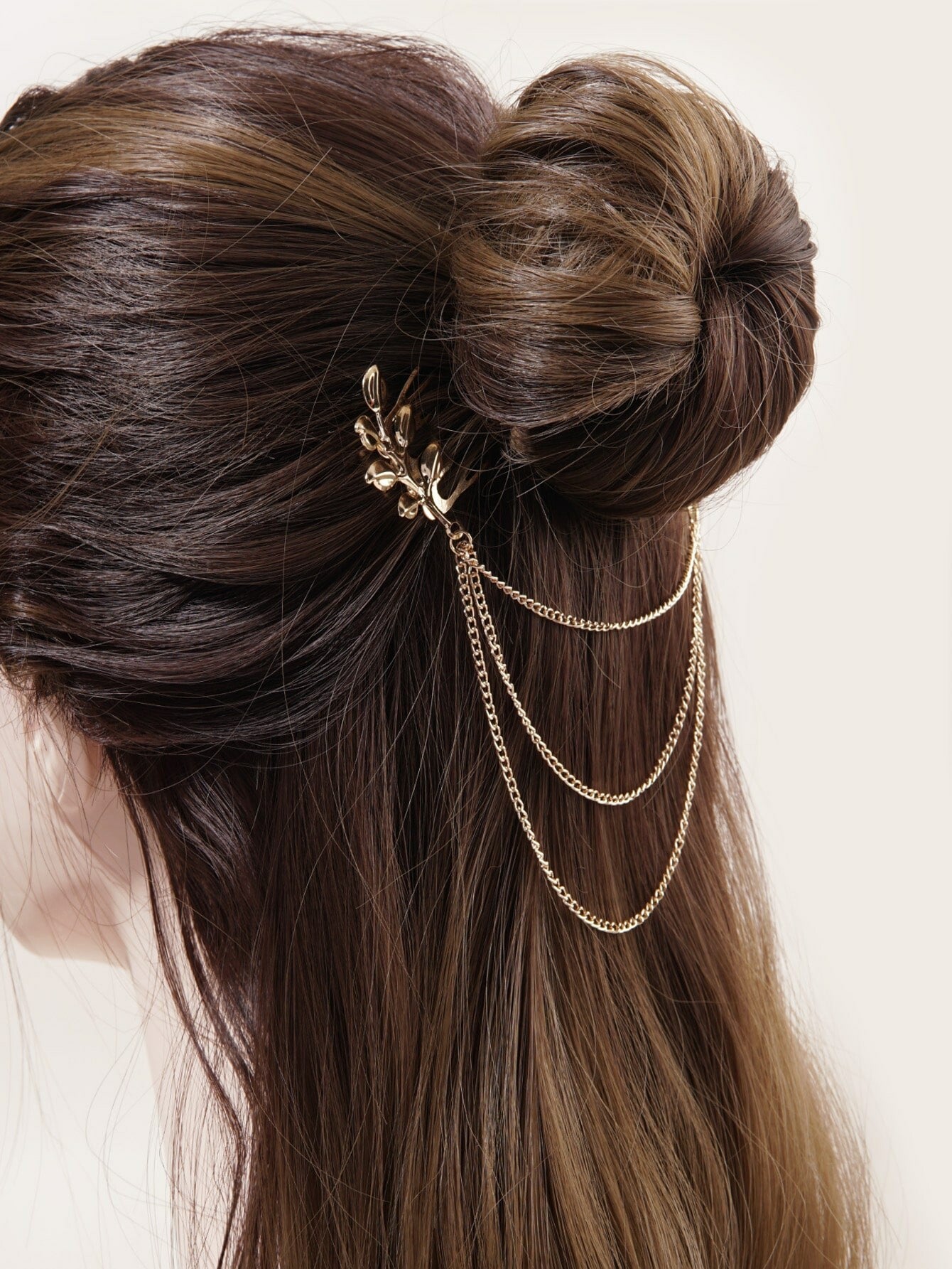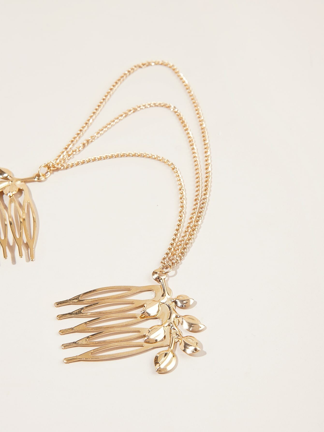 Pince à cheveux avec chaîne et feuille 100% Métal Doré & Style Casual