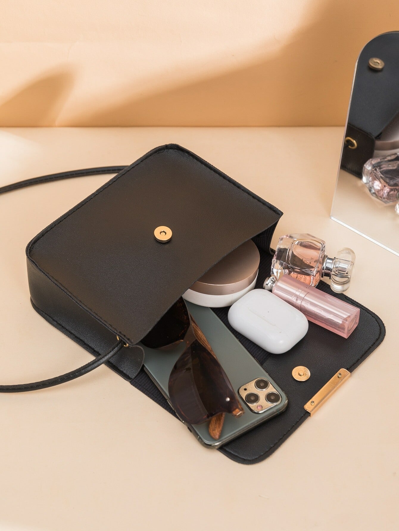 Sac carré minimaliste à rabat en Cuir PU de Couleur Noir 100% Polyuréthane & Style BCBG