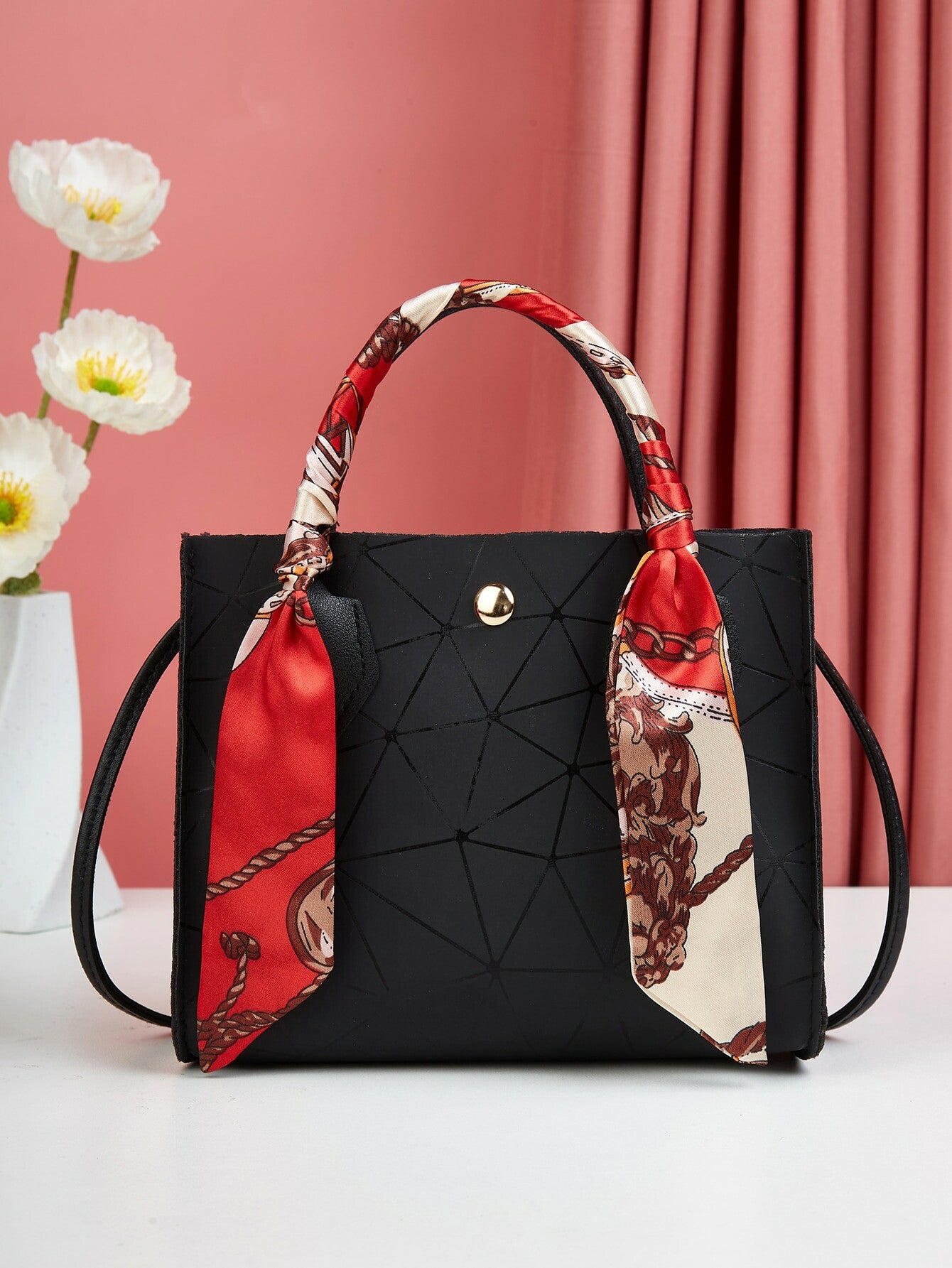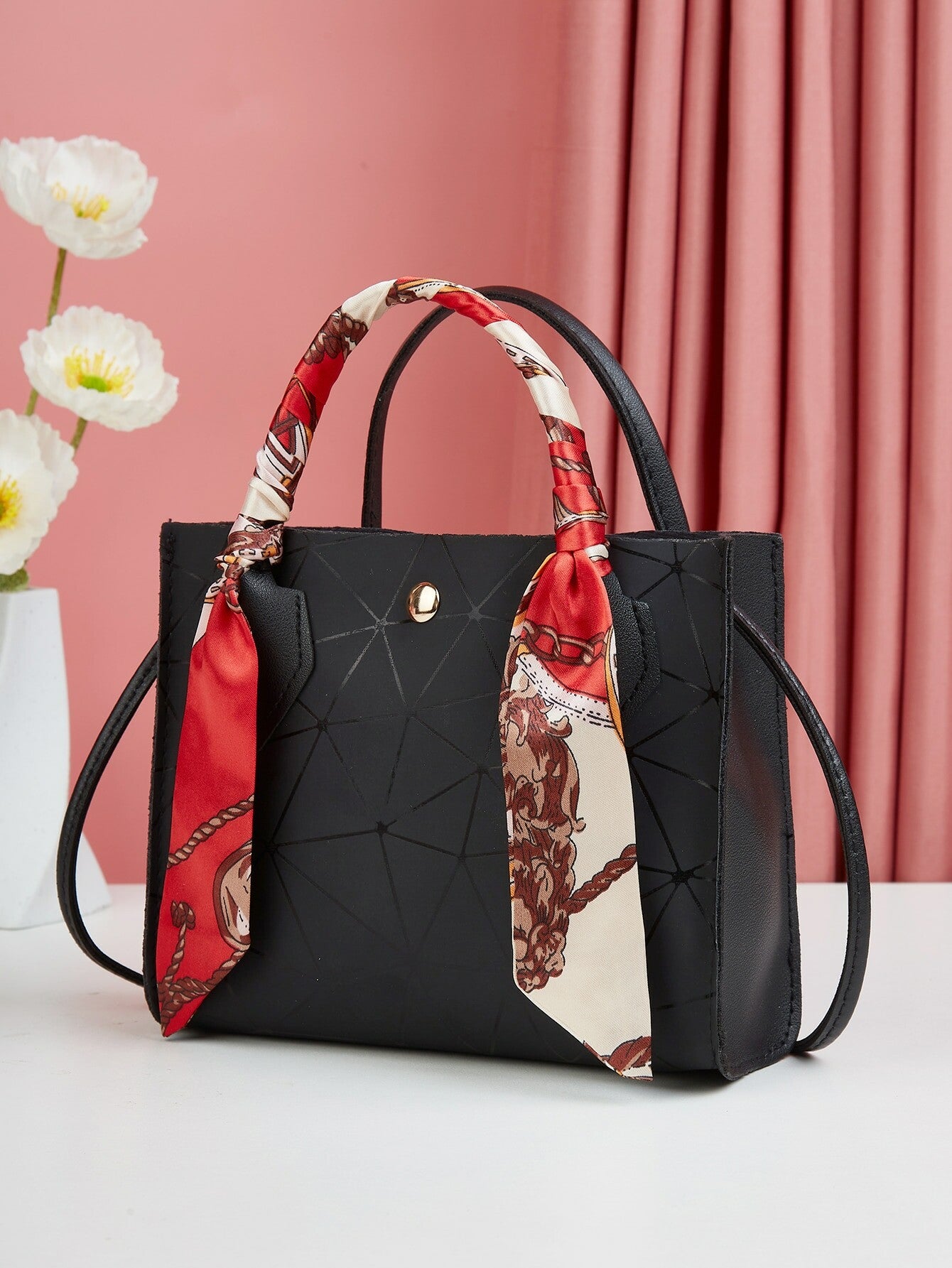 Sac à main carré géométrique à détail foulard