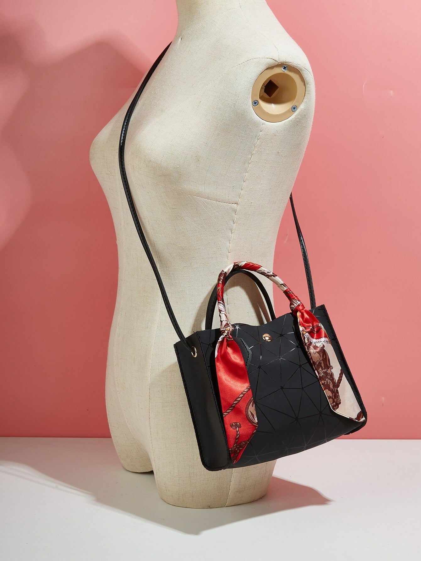 Sac carré géométrique à détail foulard en Cuir PU