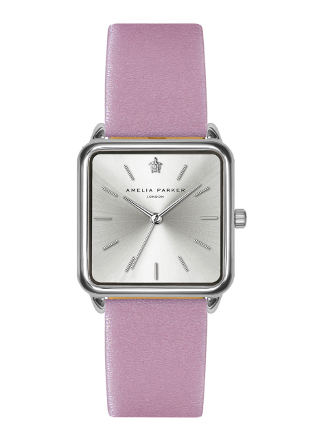 Montre à quartz en cuir et en acier - Rose et argenté - Marque Amelia Parker