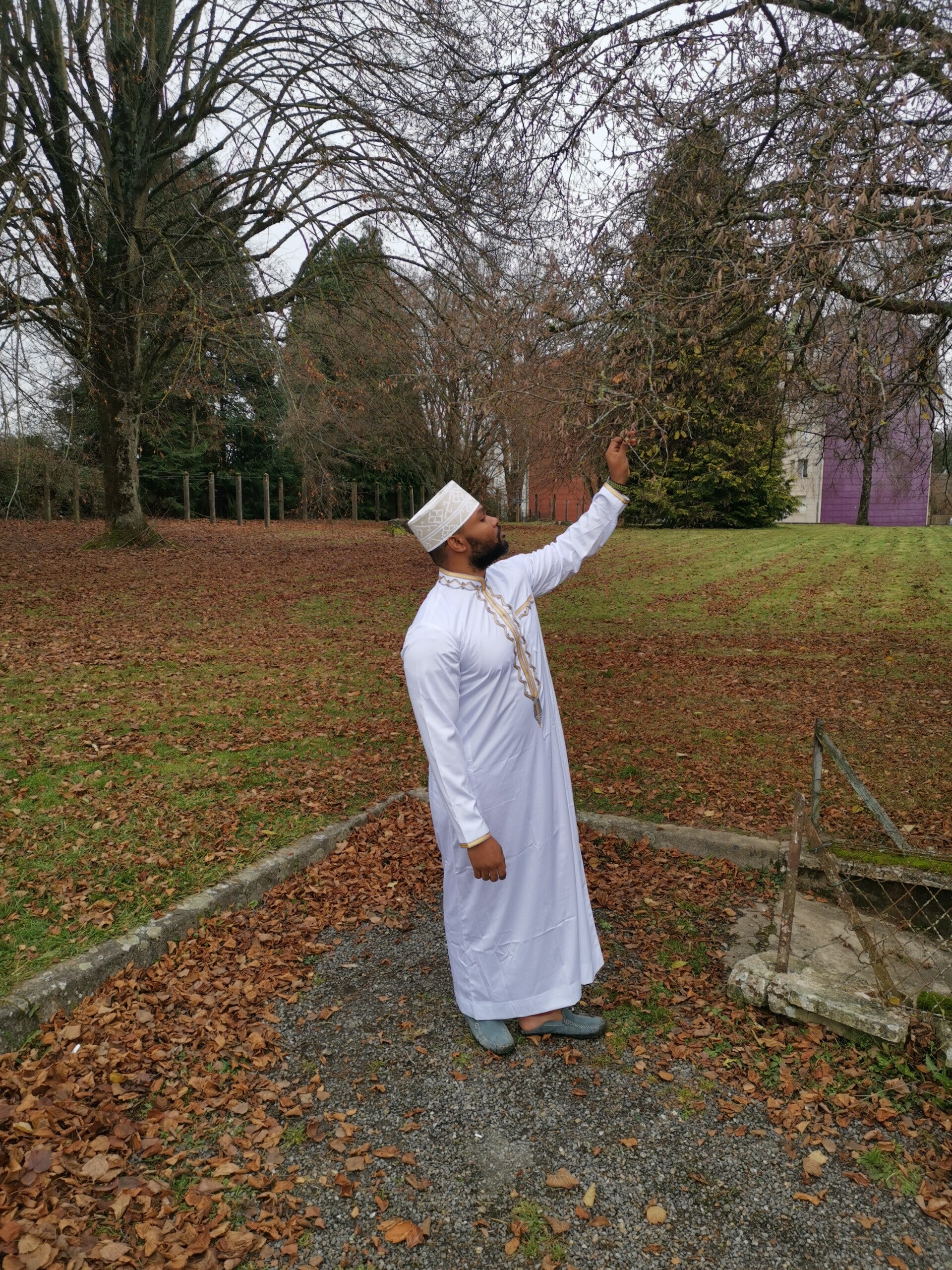 Kandzou de couleur Blanc & Or - Brodé de fils d'Or - Superbe tenue traditionnelle pour homme, très classe et sobre - Idéal pour cérémonie traditionnelle - Fait main.