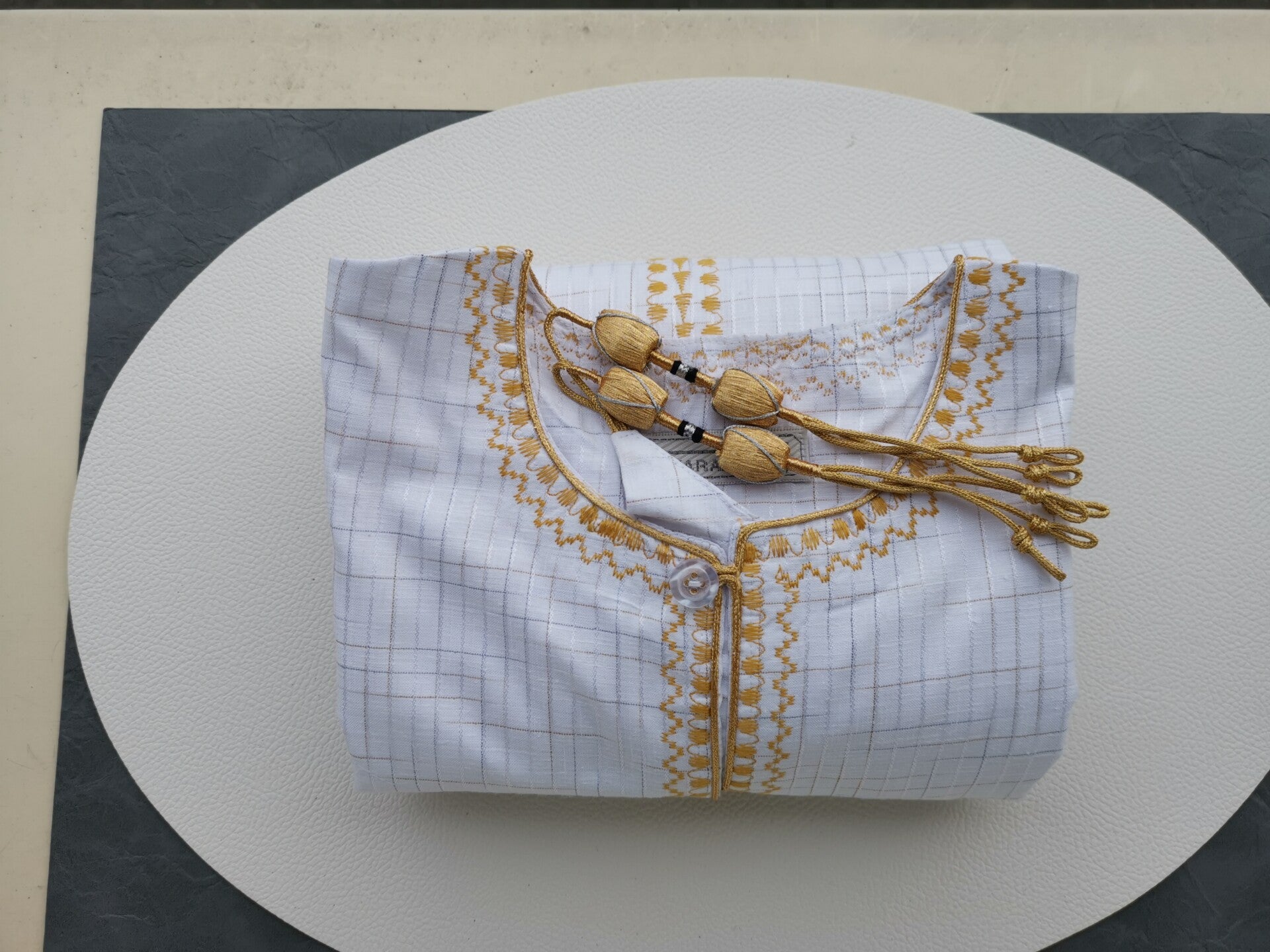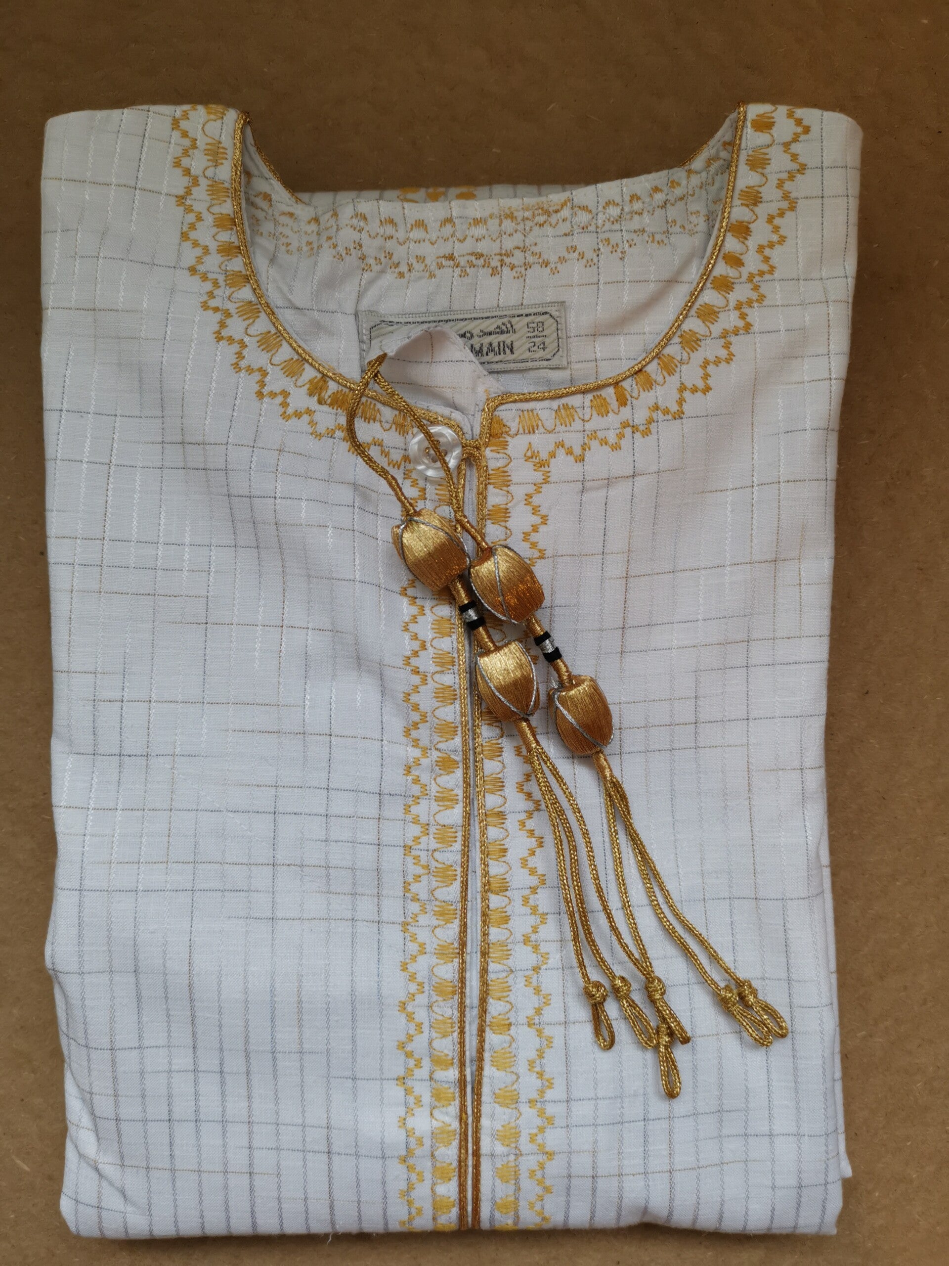 Kandzou de couleur Blanc & Or - Brodé de fils d'Or - Superbe tenue traditionnelle pour homme, très classe et sobre - Idéal pour cérémonie traditionnelle - Fait main.