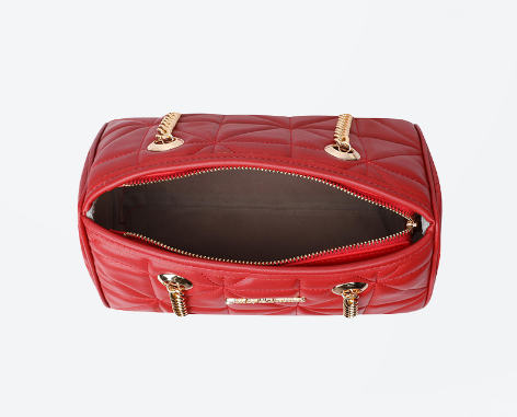 Sac porté épaule - 2 anses mi-chaînettes - Effet cuir matelassé.Logo métallique devant - Poche intérieure - Fermeture zippée. Coloris : rouge - Matière : cuir polyvinyle - Dimensions : 15 x 25 x 20 cm