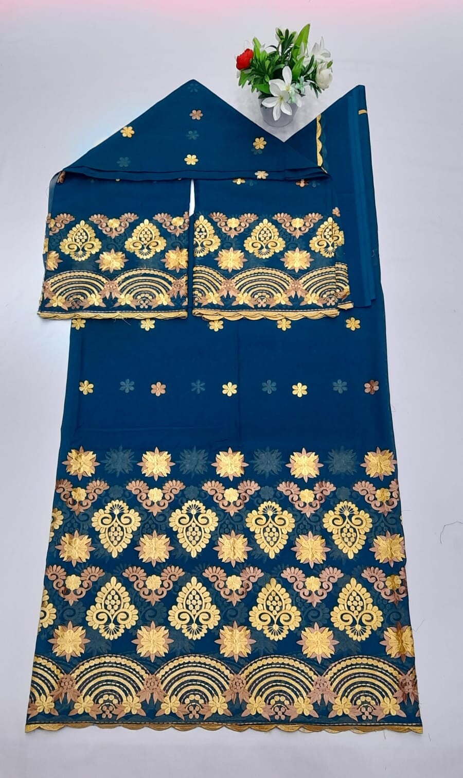 Salouva VIP Bleu & Or tissu dentelle suisse avec broderie africaine, brodé à Dubaï
