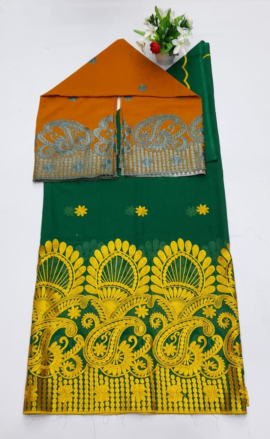 Salouva VIP Vert Emeraude & Or tissu dentelle suisse avec broderie africaine, brodé à Dubaï