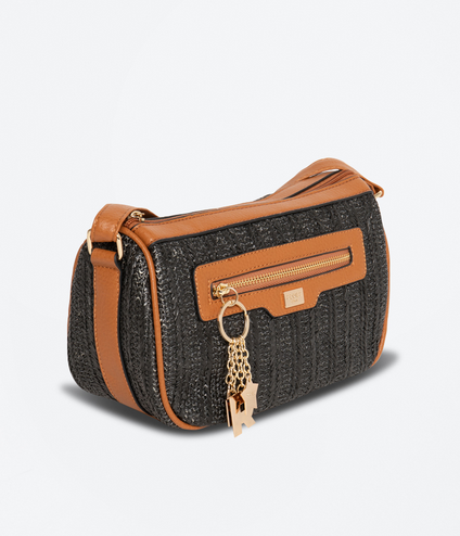 Sac bandoulière, Bandoulière réglable, Effet tressé, Empiècement métallique avec logo devant, Poche zippée devant avec tirette à empiècement logo, Fermeture zippée.