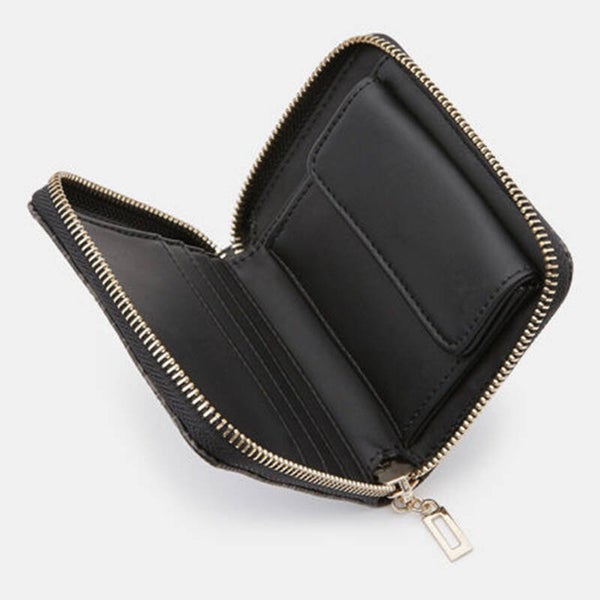 Matière : Synthétique, Se ferme à l'aide d'une fermeture éclair, Un compartiment pour billets, Trois compartiments pour cartes, Un compartiment pour monnaie, Logo signature Guess en métal à l'avant.