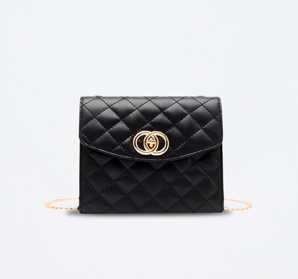 Sac bandoulière matelassée. Effet cuir. Double bandoulière chaîne. Breloque métallique décorative devant. Doublure intégrée. Fermeture par rabat et pivotante.