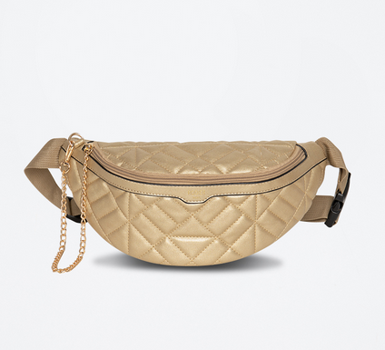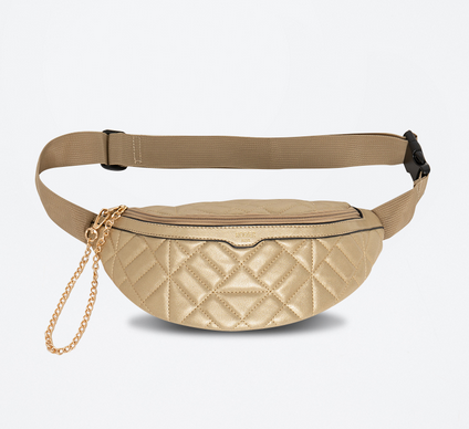 Sac banane. Sangle réglable avec fermeture par clip. Logo devant. Chaînette. Fermeture zippée. Coloris : doré, Matière : synthétique, Dimensions : 11 x 27 x 1 cm